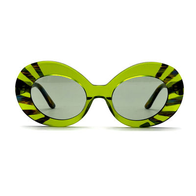 Die Sonnenbrille mit Acetatrahmen hat eine Rahmengröße von 50-21-145, was sie perfekt für Frauen mit runden Augenform macht.Das bedeutet, dass man diese Sonnenbrille draußen tragen kann, ohne sich Sorgen machen zu müssen, dass die schädlichen Sonnenstrahlen die Augen schädigen..